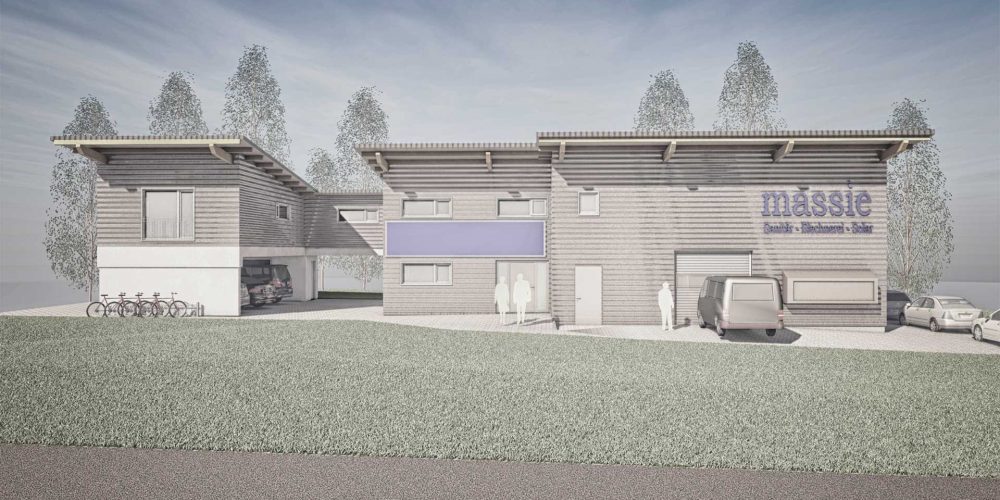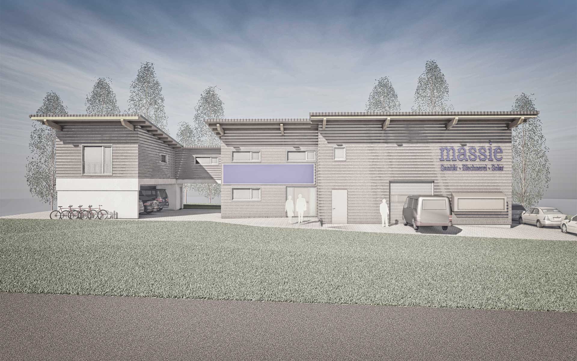 - Erweiterung des bestehenden Werkstattgebäudes um einen Anbau als Betriebsleiterwohnung